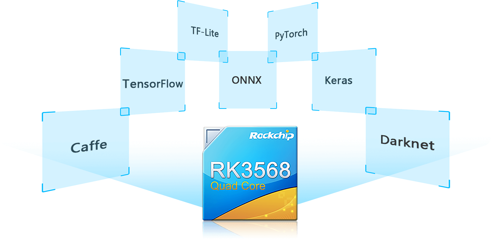 WTC-RK3568核心板采用瑞芯微RK3568处理器,该处理器内部集成1Tops高效能神经网络NPU,满足轻量级端侧AI计算,可以实时分析视频,支持Caffe / TensorFlow / TF-Lite / ONNX / PyTorch / Keras / Darknet主流架构模型的一键转换。