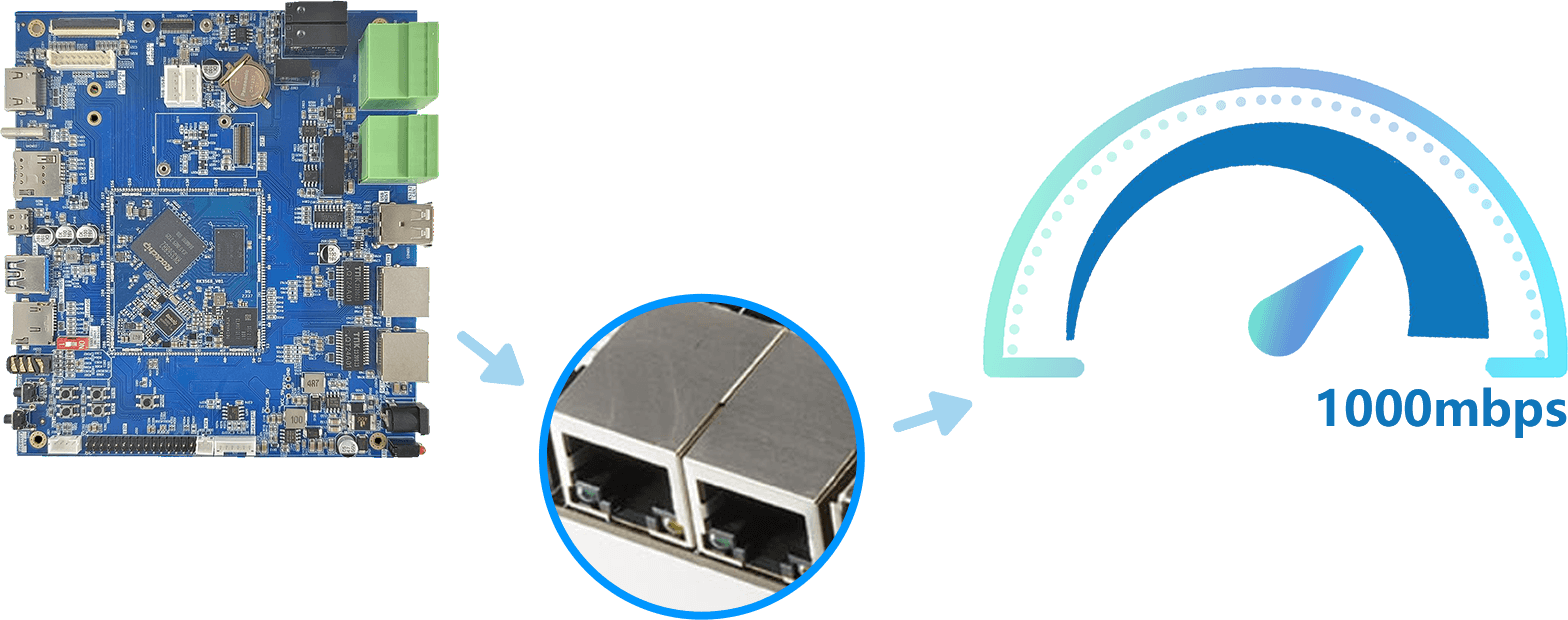 WTC-RK3568S核心板支持配置两路千兆自适应RJ45以太网扩,通过双网口实现内外网的隔离,提高网络稳定性,满足网关,NVR等多网口的产品需求。