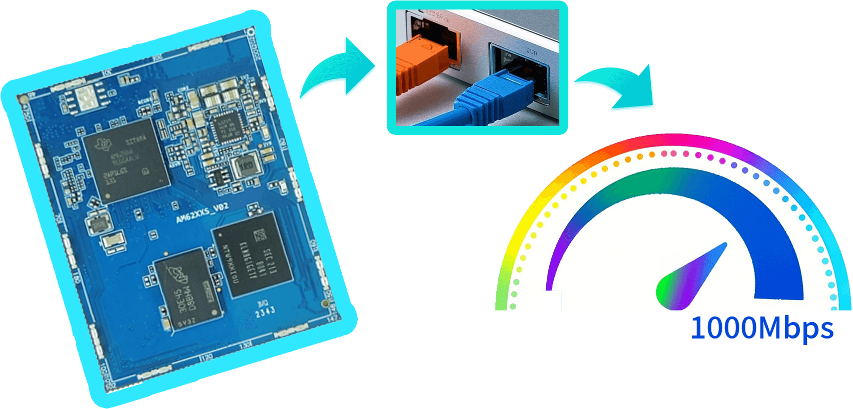 WTC-AM62XX-S核心板支持配置两路千兆自适应RJ45以太网扩,通过双网口实现内外网的隔离,提高网络稳定性,满足网关,NVR等多网口的产品需求。