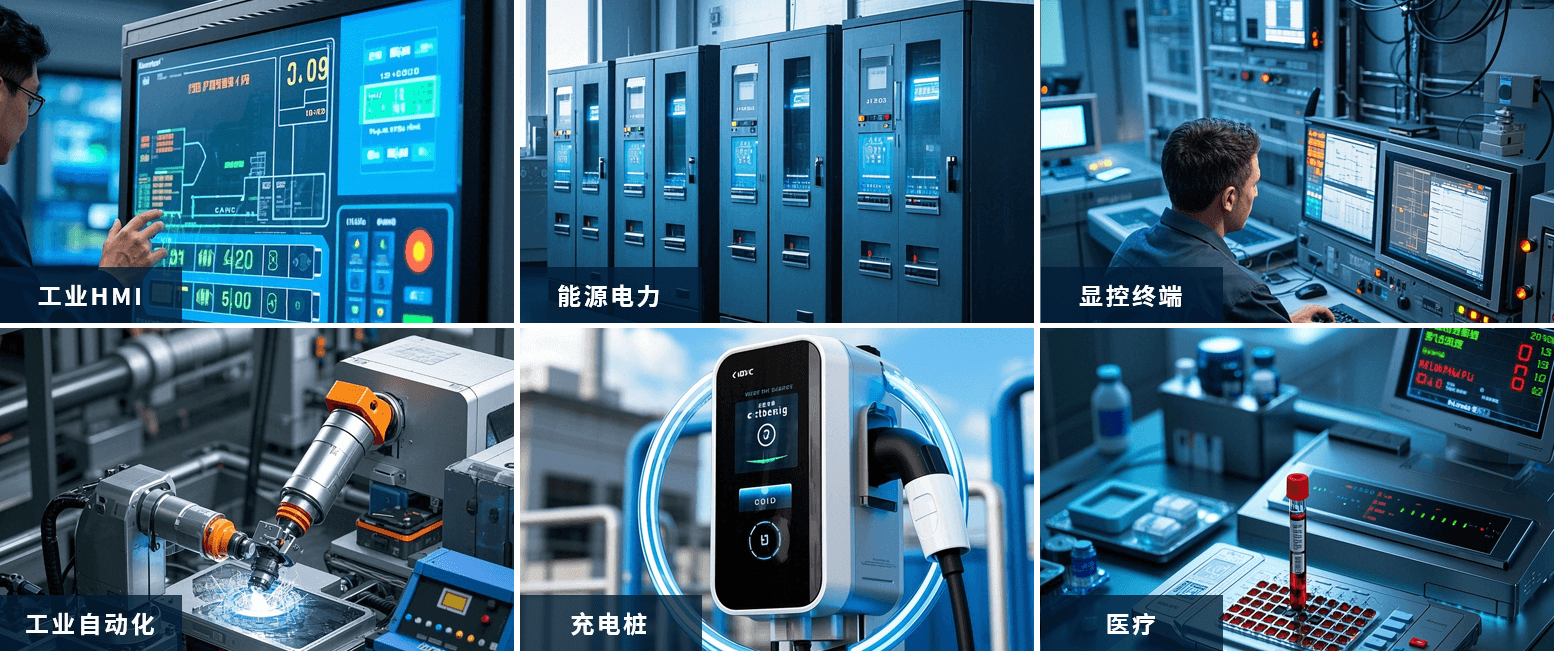 AM62x处理器是TI 一款工业级应用芯片,集成了ARM Cortex-A53高性能CPU和ARM Cortex-M4F实时CPU,含3D GPU图形加速器(仅AM625x), 支持双屏异显,支持1080P高清显示,适用于工业HMI、电力、显控终端、工业自动化、充电桩、医疗等场景。