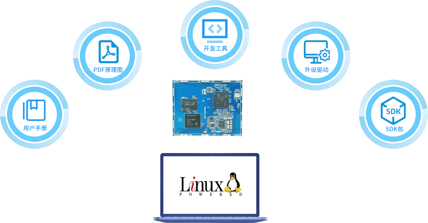 支持最新的Linux、ubuntu20.04,长期稳定运行,为产品提供稳定的系统。文档资料包含产品手册、硬件用户手册、硬件设计指南、底板PDF原理图、Linux开发指南等相关资料
