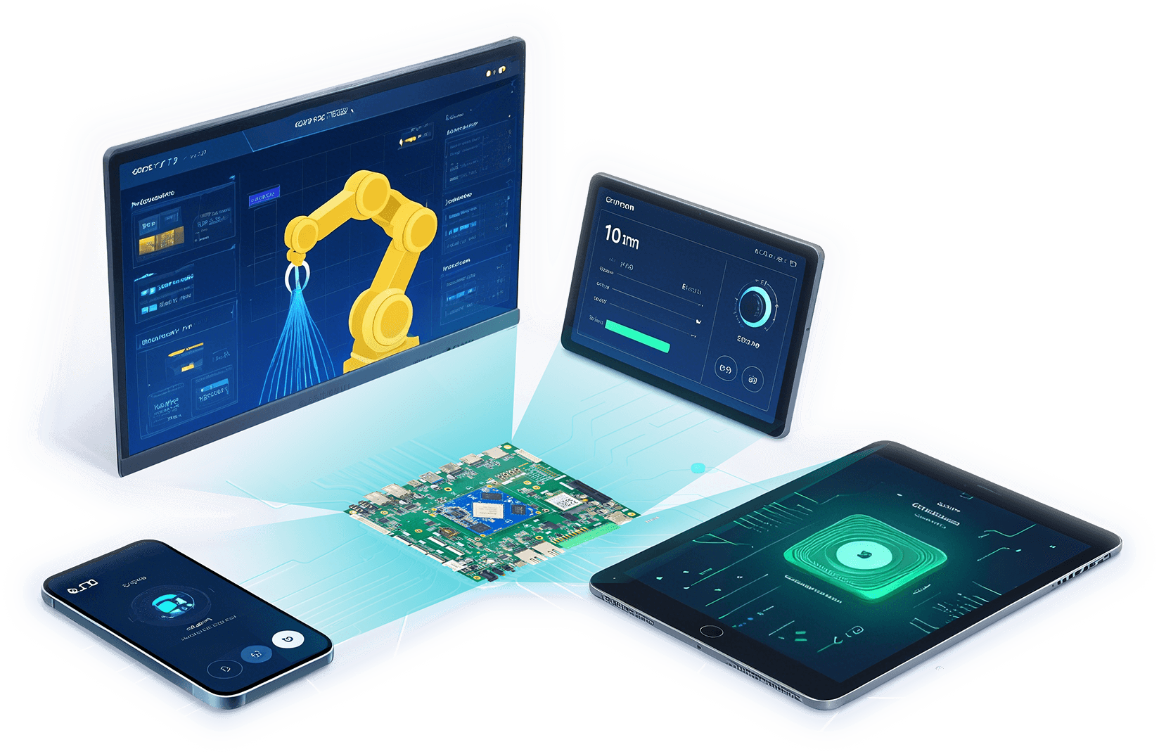 多种显示接口(2x HDMI 2.1、2x DP1.4、2x MIPI-DSI、BT.1120)最高可实现四屏异显,支持多屏联屏拼接、同显、异显,可应用于各种高清多屏互动显示场景。