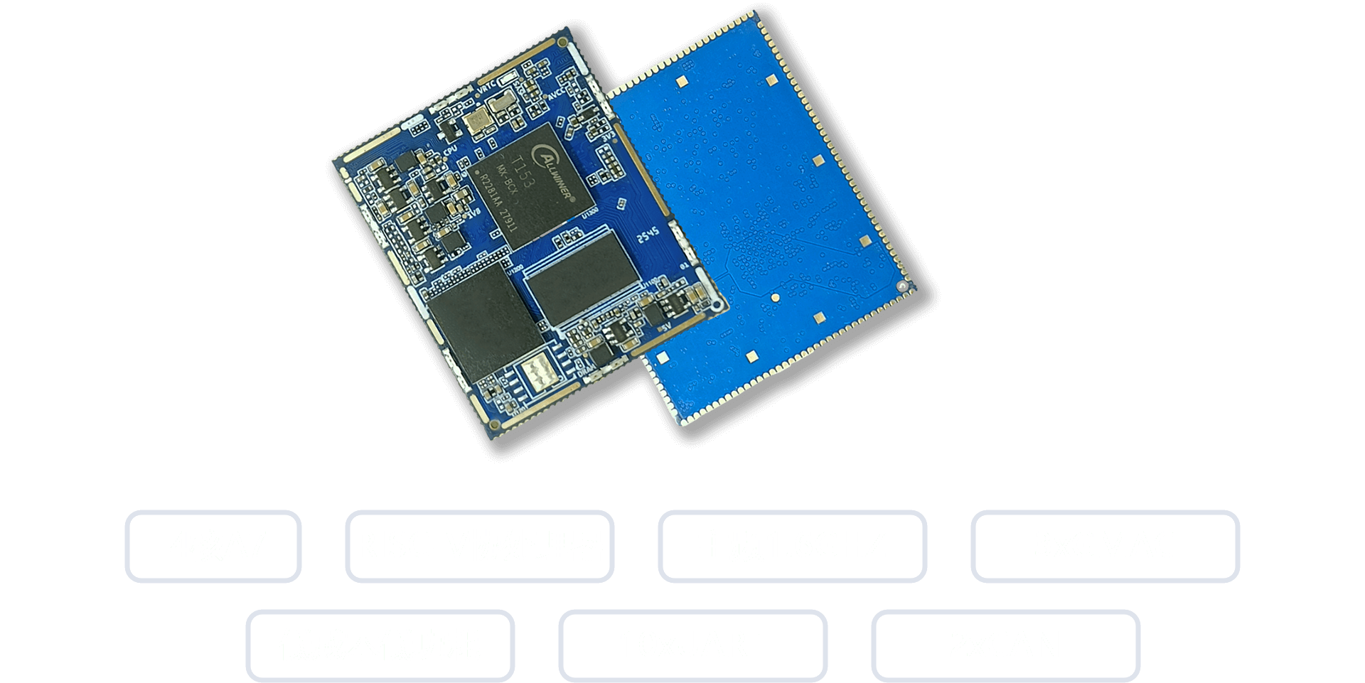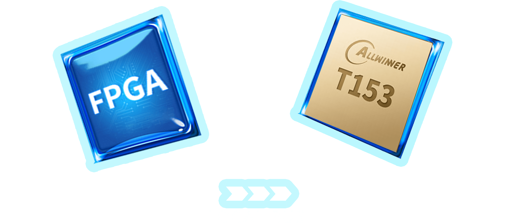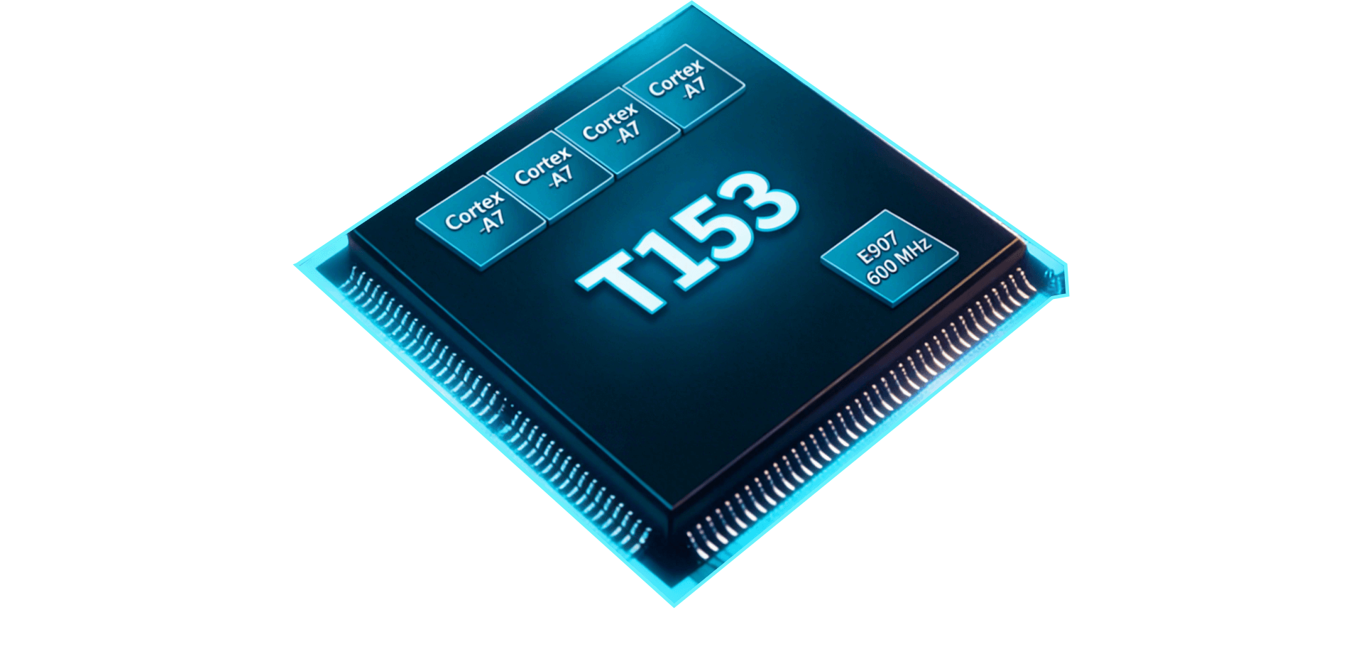 T153处理器包含了4xCortex-A7低功耗处理器、CPU主频1.6GHz、独立的RISC-V MCU,支持多核异构,控制更加实时,满足工业、电力等行业应用。