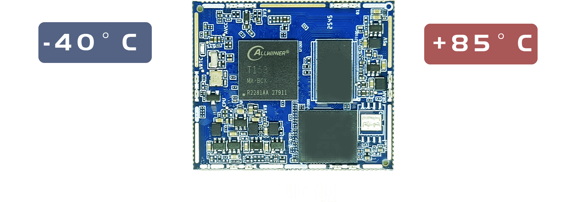核心板采用工业级芯片,确保在极端温度(-40°C~+85°C)内,能够满足7x24小时不间断稳定运行,满足工业场景的高可靠性和稳定性。