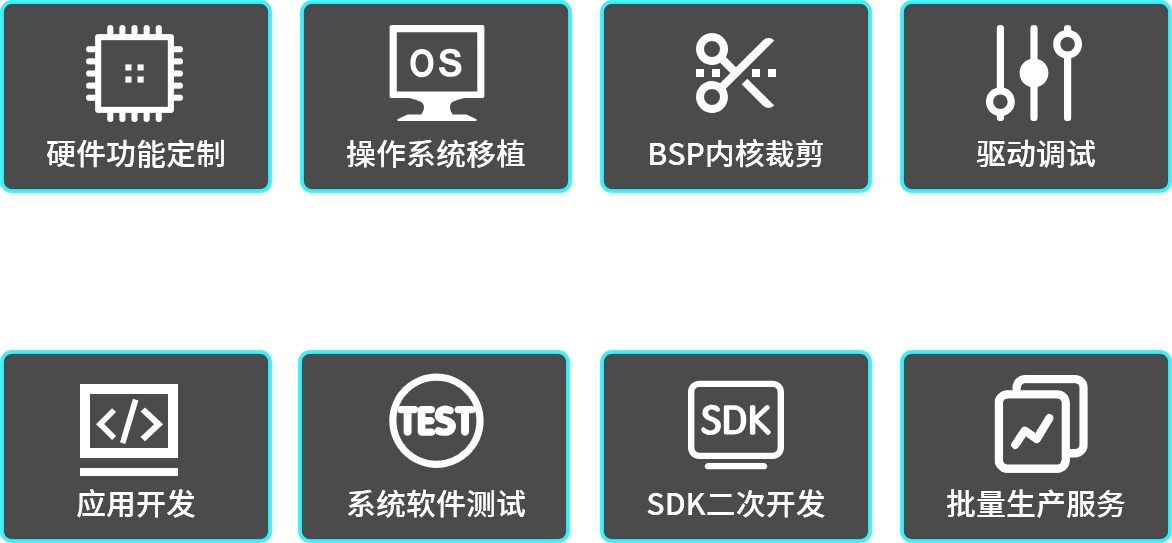 维芯科拥多年ARM产品的技术研发沉淀和合作伙伴资源,不仅能为客户提供硬件功能定制设计,还能提供跨SOC平台的操作系统移植、BSP内核裁剪及驱动调试、基于场景的应用软件开发、整体的系统软件测试服务、完善的SDK二次开发接口等一站式定制服务,帮助客户极大缩短从产品选型、研发立项、小量试产到量产交货的周期,快速抢占市场先机。